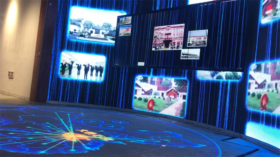 2019年1月底,我公司安装调试完成河南大桥石化红色家园党建展馆内LED显示屏的布展,共计包含一块面积15平方的PH6室内全彩LED显示大屏和一块面积约30平方的PH6.25室内互动地砖屏。